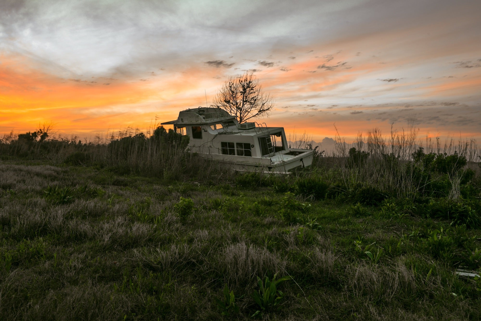 This image was taken in Dulac, Louisiana, a community located down the southern tip of Louisiana’s bayous. A landscape of houses on stilts, most with damage from past storms and thick bayous that connect to the Gulf of Mexico. At the end of shrimpers row in Dulac lays a grounded boat riddled with the damage of countless storms now laid to rest on a hostile forsaken landscape. The boat, still upright, exists as a ghost or memory of its past responsibility, however content in its new inevitably. The boat is memorialized by a shower of golden light that slips into the horizon behind.