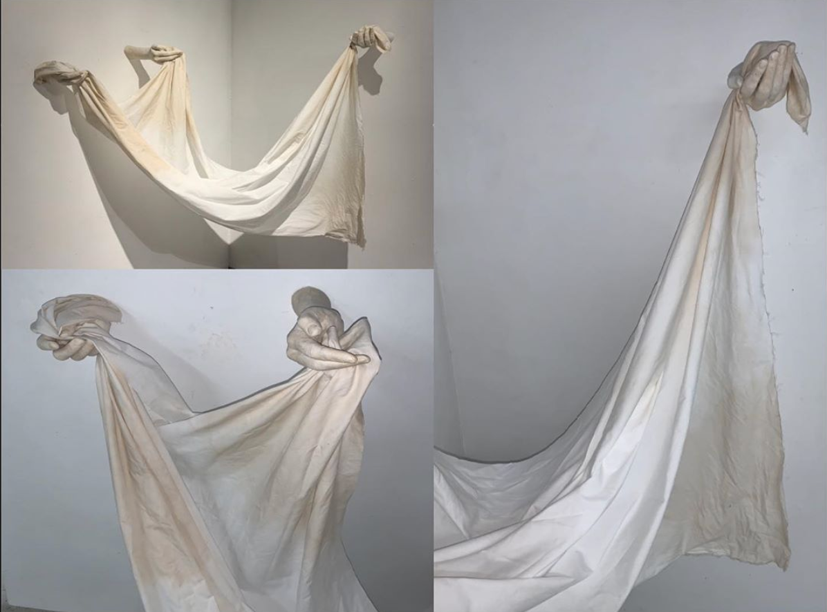 Healing Hands is about the aftermath of losing a loved one. After the loss of my father last summer, our unit of four was now three. The impressions left are still felt and seen. They won’t be quick to leave our lives. The fabric, a representation of our life, is forever in motion by our hands. A spot is seen where he once held the fabric, the indentions still fresh. Sweet tea flowing from the hands into the fabric, and the wrinkles left by his clutch are the remaining essences of his influence on our lives. A reminder of the position he once held.