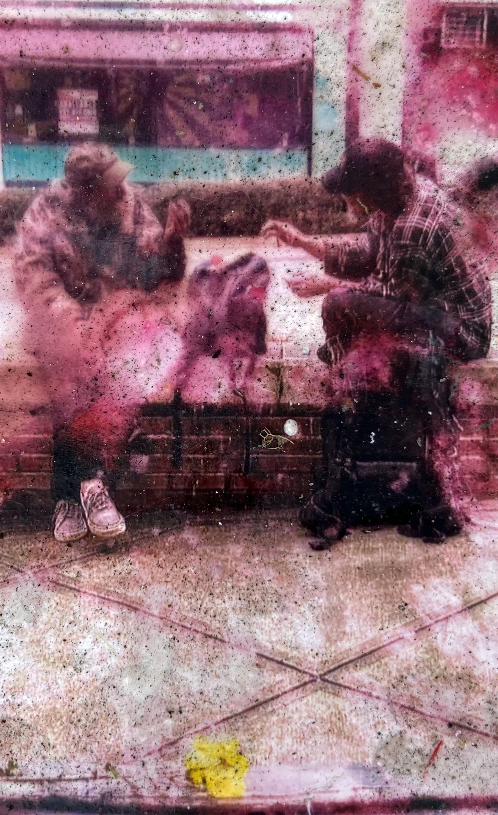 Quickly, the sculpture, which represented Keith’s memory and presence, began to decay after withstanding a month of Florida sun, rain, and participant interaction. The destruction of his portrait was particularly striking. After twenty-eight days of facing the elements, the photograph became sullied and sun-bleached. In the center, Keith began to fade away. Considering cultural associations with photography, this object reflects the physical impact of life on the street, but it also displays the entropic nature of memory; the soul’s diminishing aura.